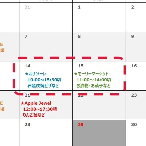 また、明日はモーリーマーケットさんがいらっしゃいます。